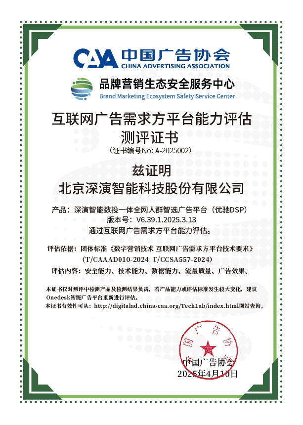 4月10日,中国广告协会发布「互联网广告需求方平台能力评估」测评结果。Martech领域领军企业PA视讯旗下产品PA视讯数投一体全网人群智选广告平台(优驰 DSP),凭借其在智能算法优化、技术创新、数据安全治理及流量质量管控等维度的突出表现,高分通过该项行业权威测评,获颁中国广告协会评估证书,成为业内首批通过认证的标杆企业。